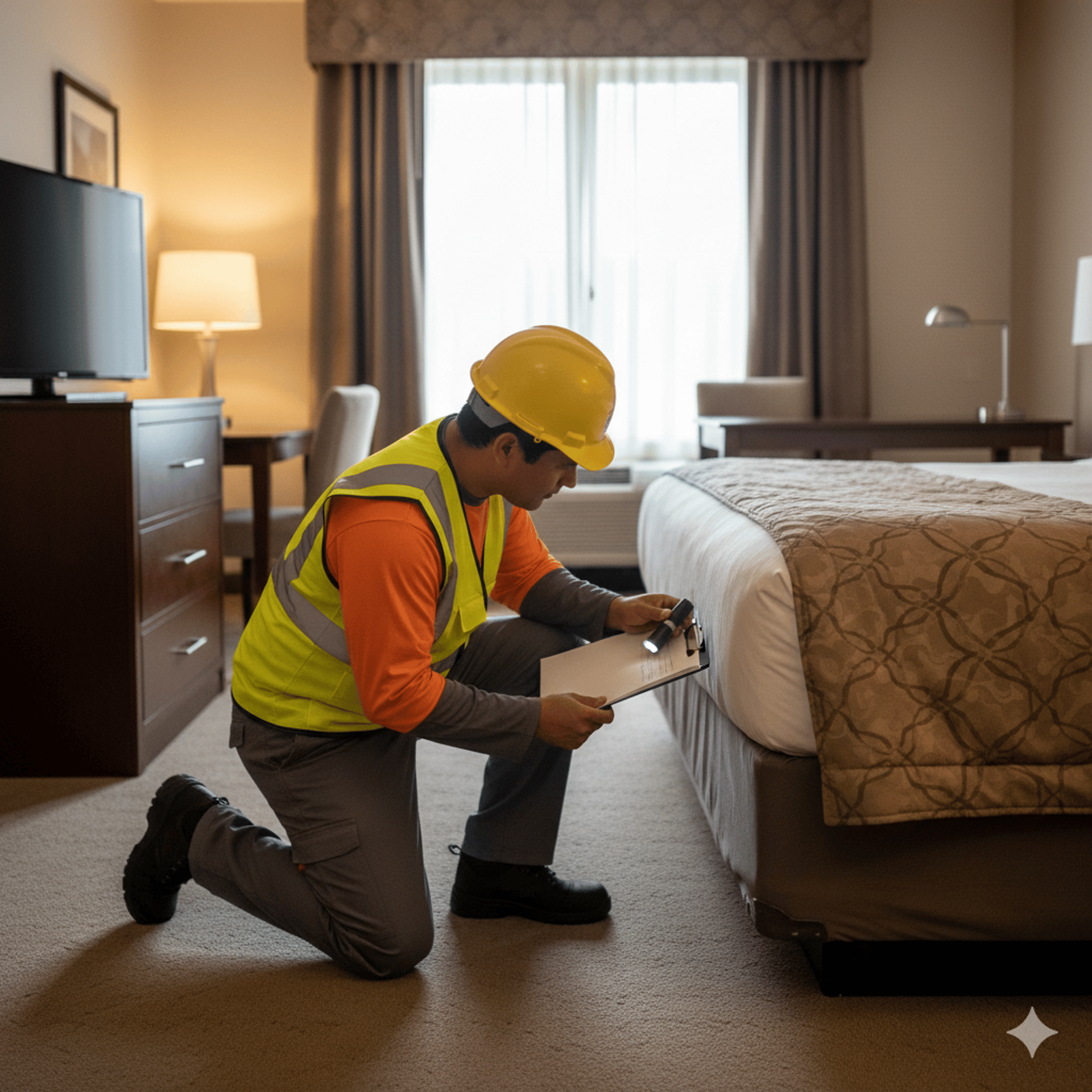 Our program includes regular inspections and treatments tailored to your hotel's needs.
